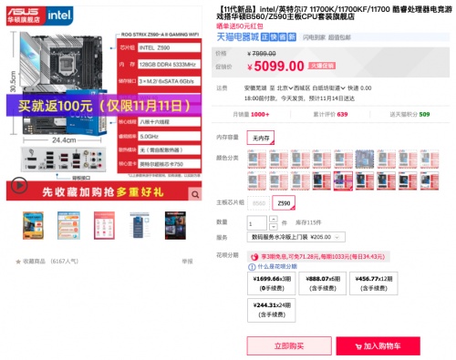 且天猫商城还有华硕Z590吹雪二代主板搭i7-11700K处理器套包,5099元火爆促销中,另享3期免息福利。购买链接:https://detail.tmall.com/item.htm?id=639375864946&skuId=4595712940016